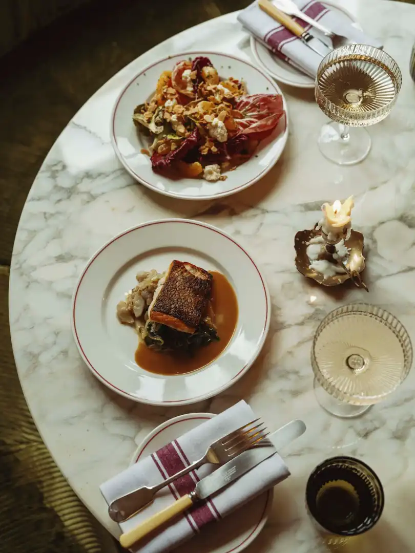 Customers who arrive at the bakery early will find burnt-lemon tarts, brown-butter-and-hazelnut croissants and wild-garlic-and cheddar twirls. Come nightfall, a candlelit bistro-style ambience beckons, with dishes by ex-Noble Rot chef Luke Frankie.
