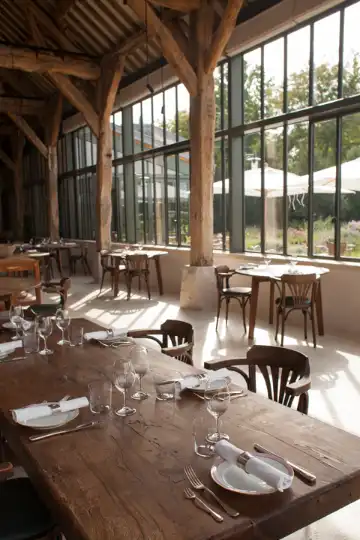 Aussie chefs James Henry and Shaun Kelly made a name for themselves in the restaurants of Paris. But after years in the kitchen, they turned to growing organic vegetables on their farm in Saint-Vrain. Housed in a lovingly restored barn, Le Doyenné opened as a restaurant and guesthouse in 2022 and has had a fine following ever since. Inside the restaurant, glass-paned walls provide views of the garden.