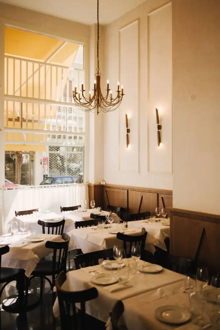 True to its name, Dodeka Piata (“12 plates”) offers a dozen dishes in celebration of the Greek concept of mezedes (sharing plates). The new restaurant in Koukaki is overseen by chef Pavlos Kyriakis and features mosaic-tiled floors and white linen tablecloths, with wooden chairs replacing the straw seats of a taverna. The menu is modest in volume but the smoked tzatziki and tyrokafteri, a spicy whipped cheese dip, will leave you satisfied. The pork gyros with paprika and onion are exceptional.