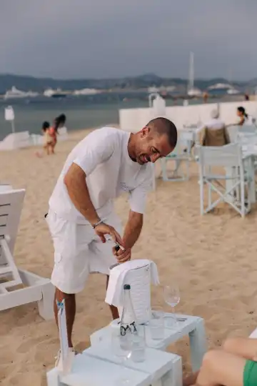 When we join Moutet for a mid-morning coffee on the ocean-facing terrace, he is greeting a steady stream of evenly tanned beachgoers flocking to their chosen lounger for a day under the Mediterranean sun. “You come mainly to come back,” he says. The same holds true for the staff: many of them have worked here for years and know the regulars by name, as well as whether or not they take a slice of lemon in their sparkling water.