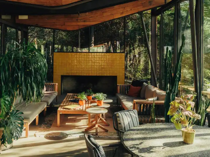 Erozan refers to the Mediterraneo Pavilion, where breakfast is served every morning and dinner is hosted on off-season nights, as “the winter garden”. It’s a striking, black-metal structure with expansive windows that make you feel as though you were sitting outside among nature. For the past three years, Macakizi has stayed open well beyond its usual summer season into winter. Built in 2019, the pavilion was designed by Ahmet Alatas; Istanbul-based firm Tabanlioglu oversaw the hotel’s reception area, built in 2000, as well as the recently opened Ayla restaurant.