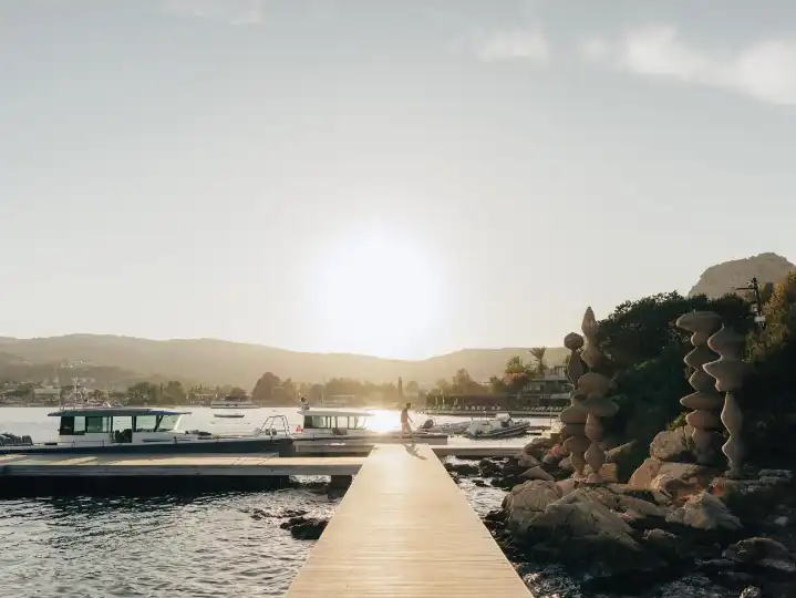 Just a 50-minute drive from Milas-Bodrum Airport, Macakizi has five Land Rover Defenders, each subtly marked with a spade, ready to transport guests anywhere. As you approach the secluded bay where the hotel sits, you’ll leave behind the bustle and find a serene escape.