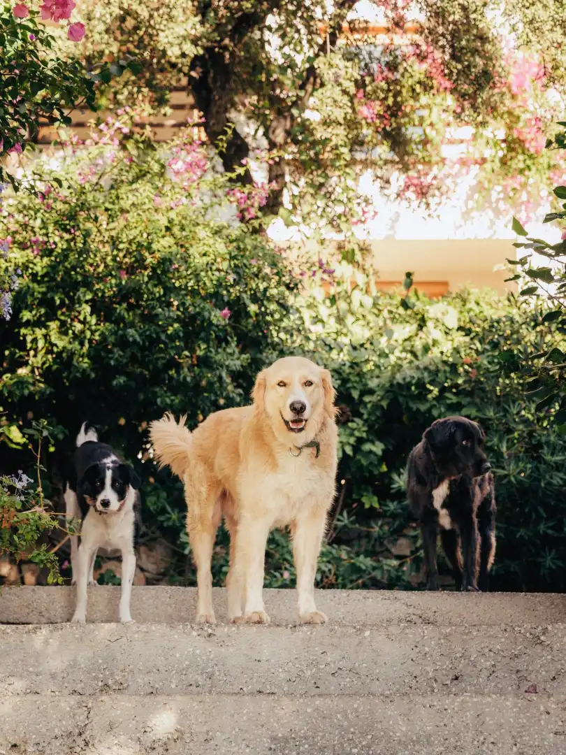 The Macakizi hotel’s three dogs: Lucy, Vasilis and Alexis