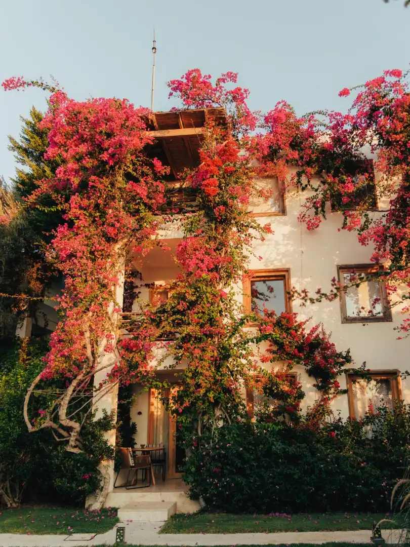 Bougainvillea-covered guest rooms
